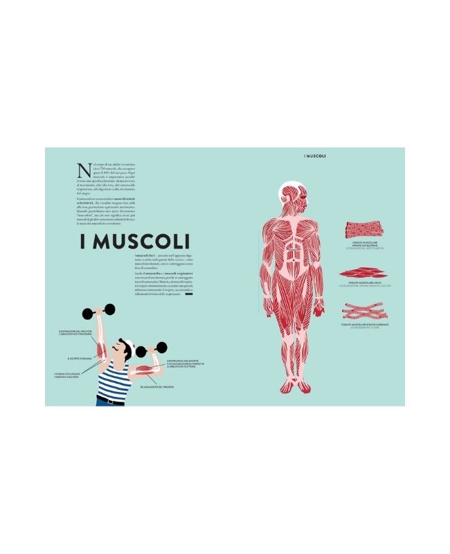 Un viaggio inedito alla scoperta del corpo umano attraverso eccezionali animazioni. Un libro unico nel suo genere, arricchito da finestrelle e con pagine impreziosite dai tagli laser per conoscere il corpo nei minimi dettagli. Hélène Druvert, illustratrice e designer della carta, concepisce le doppie pagine rifacendosi all’illustre tradizione delle tavole anatomiche del XIX secolo. I testi precisi e accessibili sono redatti dal padre dell’autrice, il dottor Jean-Claude Druvert, e accompagnano bambini e ragazzi alla comprensione del funzionamento del nostro corpo.