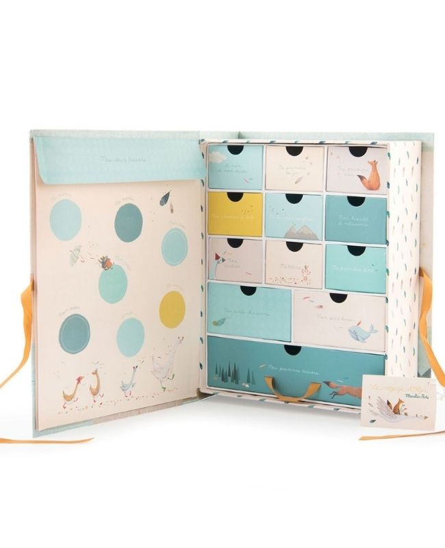 Una preziosa scatola dei ricordi in cui conservare i tesori del bambino: il braccialetto del reparto maternità, il primo ciuccio, i biglietti di auguri e le fotografie dei momenti più importanti. Tanti cassetti , colori delicati, un regalo che accompagnerà la crescita e rimarrà nella memoria.