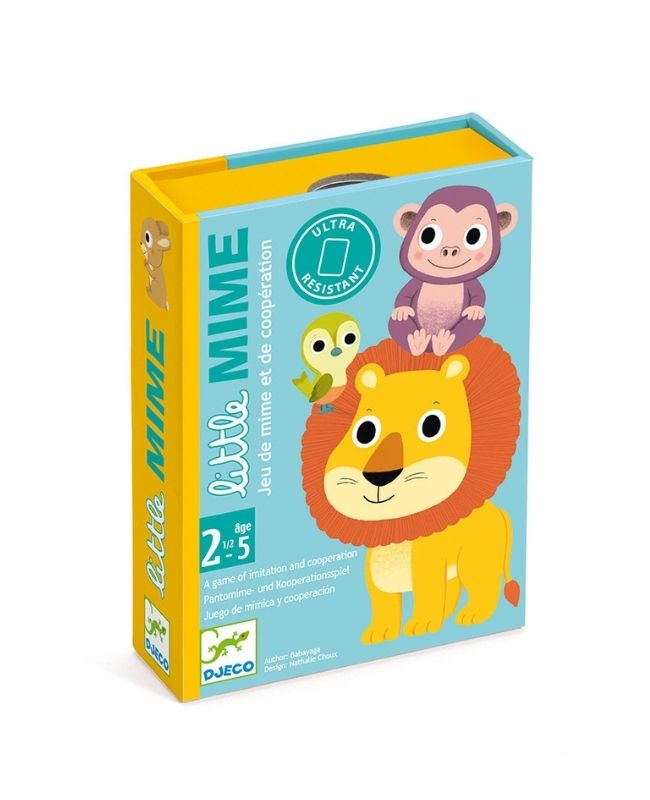 Gioco di carte collaborativo con protagonista il mimo, pensato appositamente per i bambini più piccoli e per i loro primi approcci al mondo del gioco collettivo. Bisogna aiutare i cuccioli a ritrovare la strada di casa mimando il verso o i movimenti dell’animale adulto. Il vitello seguirà il mimo della mucca, il pulcino quello del gallo, e il leoncino? Un bel ruggito gli darà certamente l’aiuto che gli occorre!