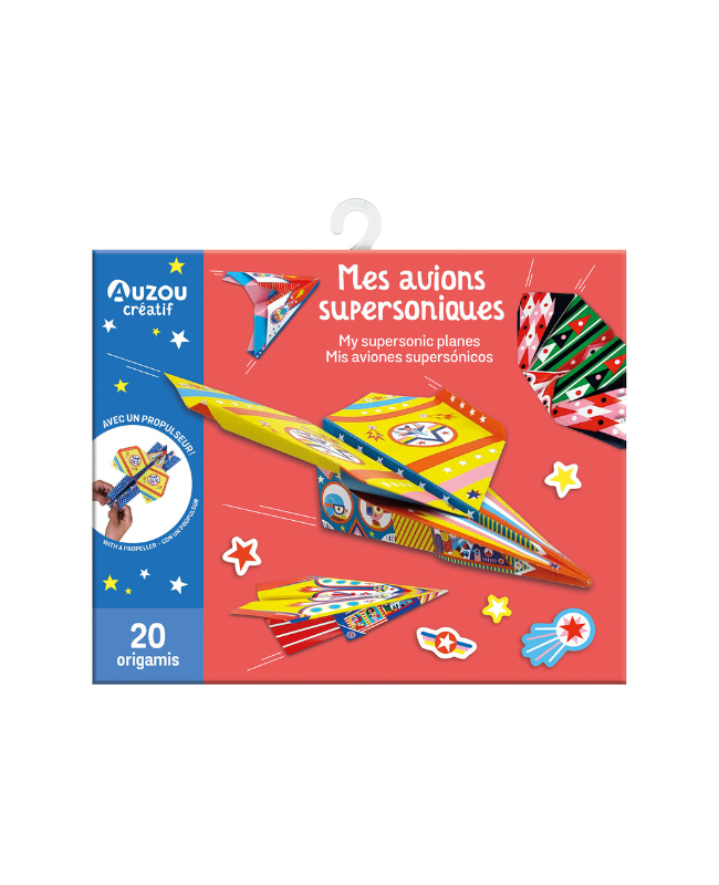 20 fogli coloratissimi, pieni di decorazioni e su cui attaccare, a piacimento, gli adesivi presenti nella confezione, per realizzare aerei supersonici da far decollare per incredibili voli!