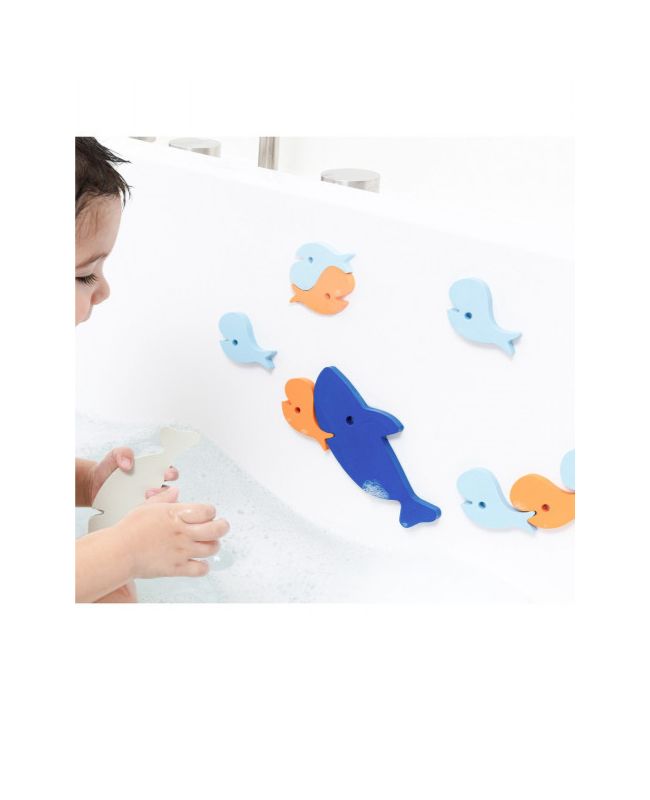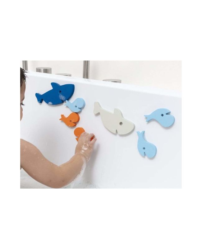 Il momento del bagnetto sarà molto più allettante e divertente con questi squaletti a incastro, che riescono ad ingoiare tanti pesciolini… Le forme galleggiano sull’acqua e possono essere attaccate al bordo della vasca o alla parete della doccia.