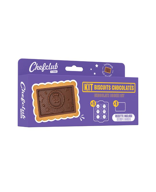 Un set per realizzare deliziosi biscotti con strato di cioccolata, decorati con immagini simpatiche e buffe.