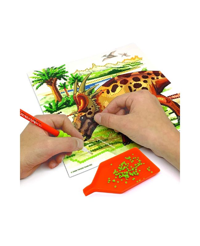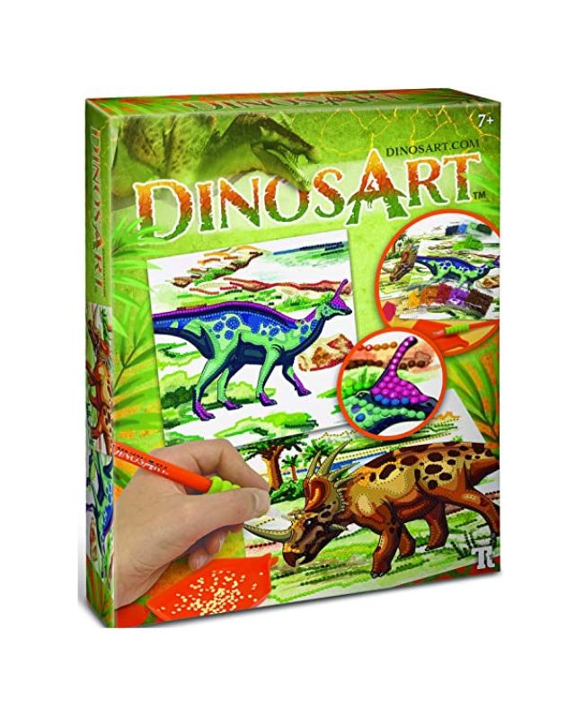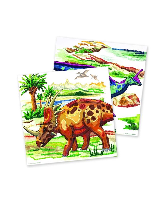 Più di 4500 strass colorati per decorare e rendere scintillanti due quadri a tema dinosauri!