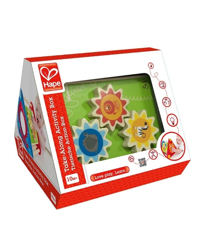 Triangolo Multiattività Hape: questo grande gioco in legno con 5 lati ha ingranaggi, palline e blocchi girevoli, un labirinto, tanti colori e uno specchio per riflettere il viso del bimbo. Con maniglioni per girarlo e spostarlo in modo agevole e sicuro.