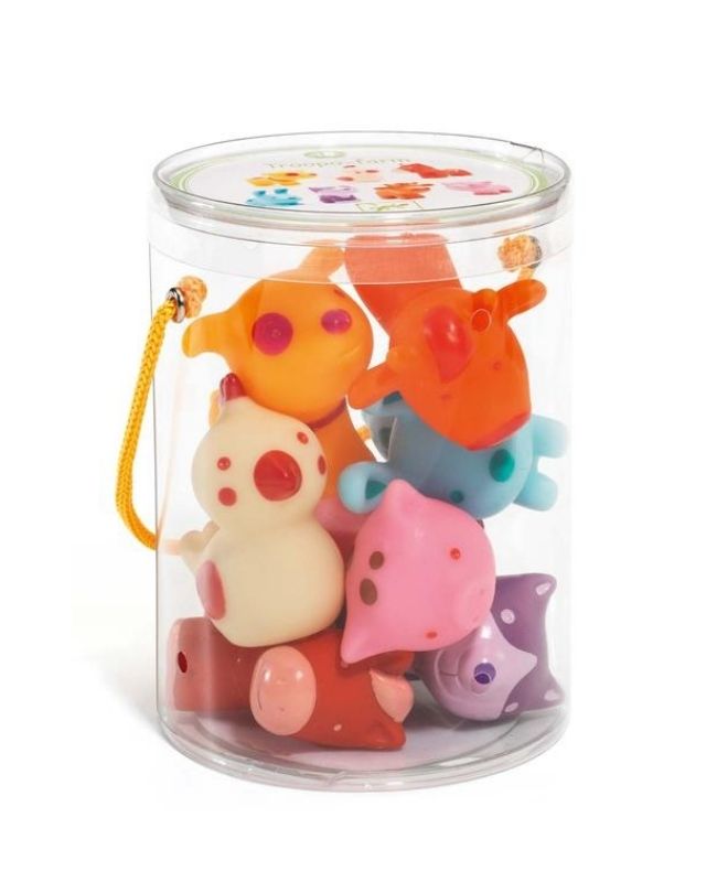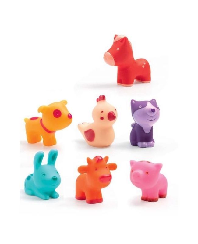 7 animali della fattoria pronti a vivere tutti i primi giochi fantasiosi del bambino! Coloratissimi, molto maneggevoli, con musetti simpatici che invitano a immaginare storie per cane, gallina, cavallo, coniglio, gatto, mucca e maiale.