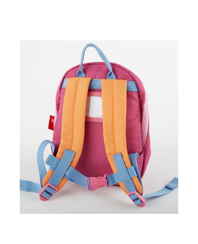 Uno zainetto pratico e carino, con muso di pony applicato e orecchie 3D, progettato appositamente per i bimbi più piccini a partire dai 2 anni. Leggero, maneggevole, con cerniera a due tiretti, ha schienale e spallacci imbottiti, cinghie regolabili per spallacci e cinghietta pettorale.  Manico superiore per facile presa e per appenderlo, fodera resistente e di facile pulizia, porta etichetta per nome all’interno. Perfetto per le uscite o per la scuolina.