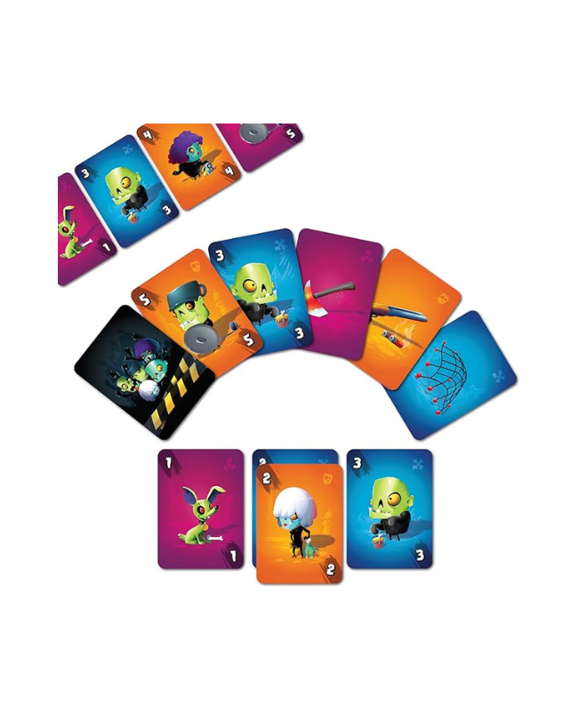 ZombieZ è un gioco di carte basato sul meccanismo del “push-your-luck”: più rischi e più la ricompensa è alta ma la disfatta potrebbe essere dietro l’angolo!
